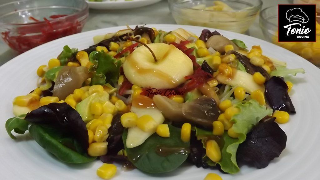 Descubre cómo preparar una nutritiva y deliciosa ensalada Asiática. Es una rica ensalada a la que daremos un toque asiático con brotes de soja, setas Teriyaki, maíz, manzana, aguacate y remolacha. Esta ensalada es SIN GLUTEN y 100% VEGANA, muy saciante y nutritiva, aunque lo mejor es que está… buenísima.
